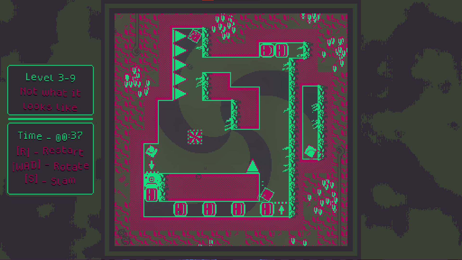 In AMPLOBUS, you use the arrow keys or WASD to rotate the world and use gravity to help your character reach the exit, and solve puzzles.
